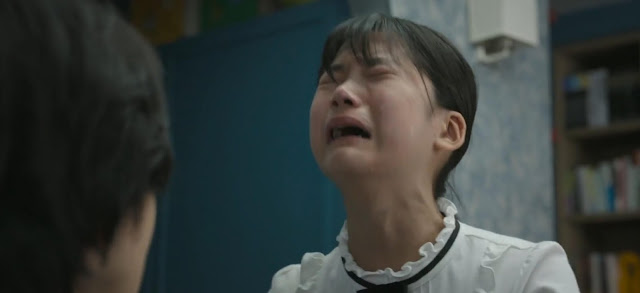 | She turned away to hide her smile out of happiness. It's bittersweet to see her act her age when being with Myeong Jun. |